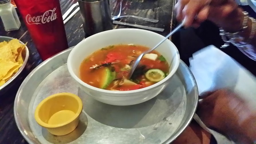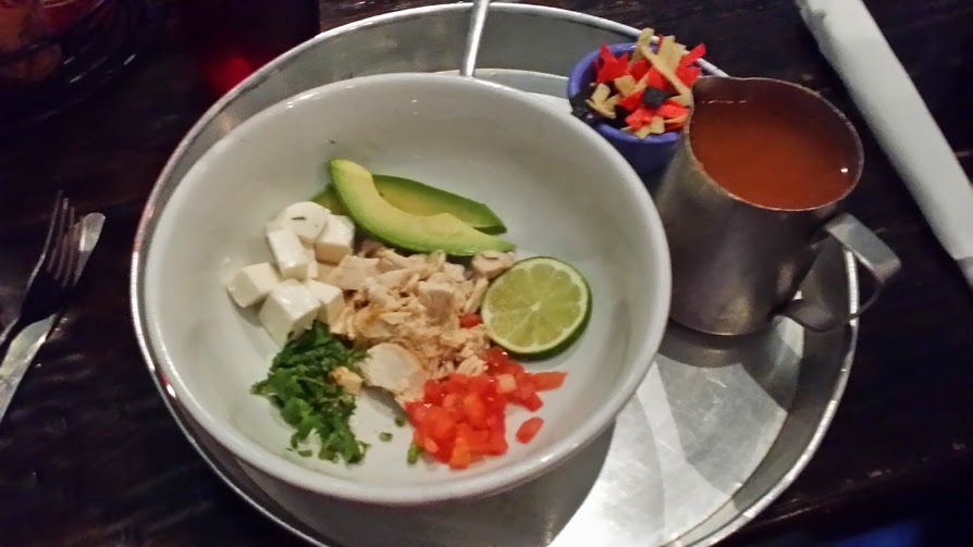 We ate lunch at a Mexican restaurant, Taco Mamacito, and when they brought soup to me it looked like this. I was puzzled but my aunt said to just pour the liquid over the contents of the bowl.