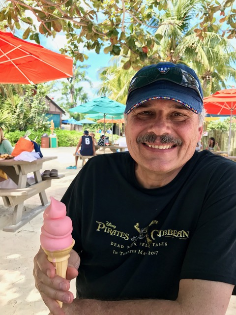Every where you turn and every where you go there is a delicious and tasty treat awaiting you! This is my husband enjoying some ice cream on Castaway Cay, Disney’s island in the Bahamas. We also had barbecue that day and I had a great smoothie from one of the little shops.
