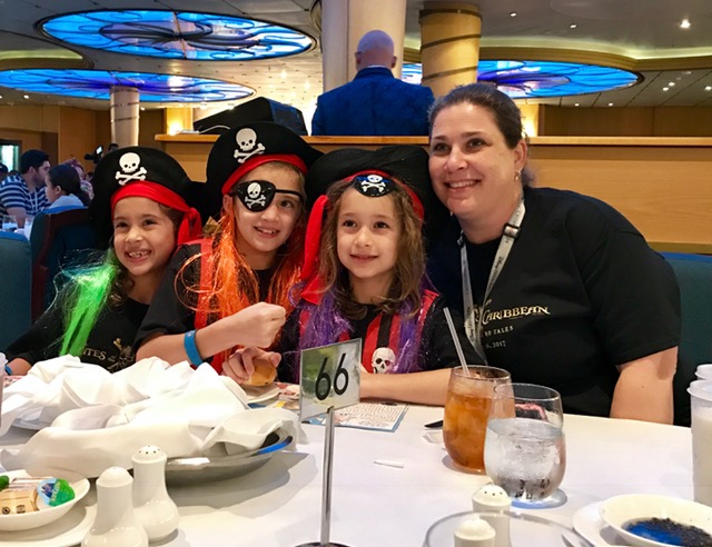 As you can see my adopted grandchildren for the trip are dressed like pirates. There was a Pirate Party on the ship (we were on The Wonder, just in case you were wondering) and the kids absolutely loved it. Aren’t they the cutest little pirates ever?