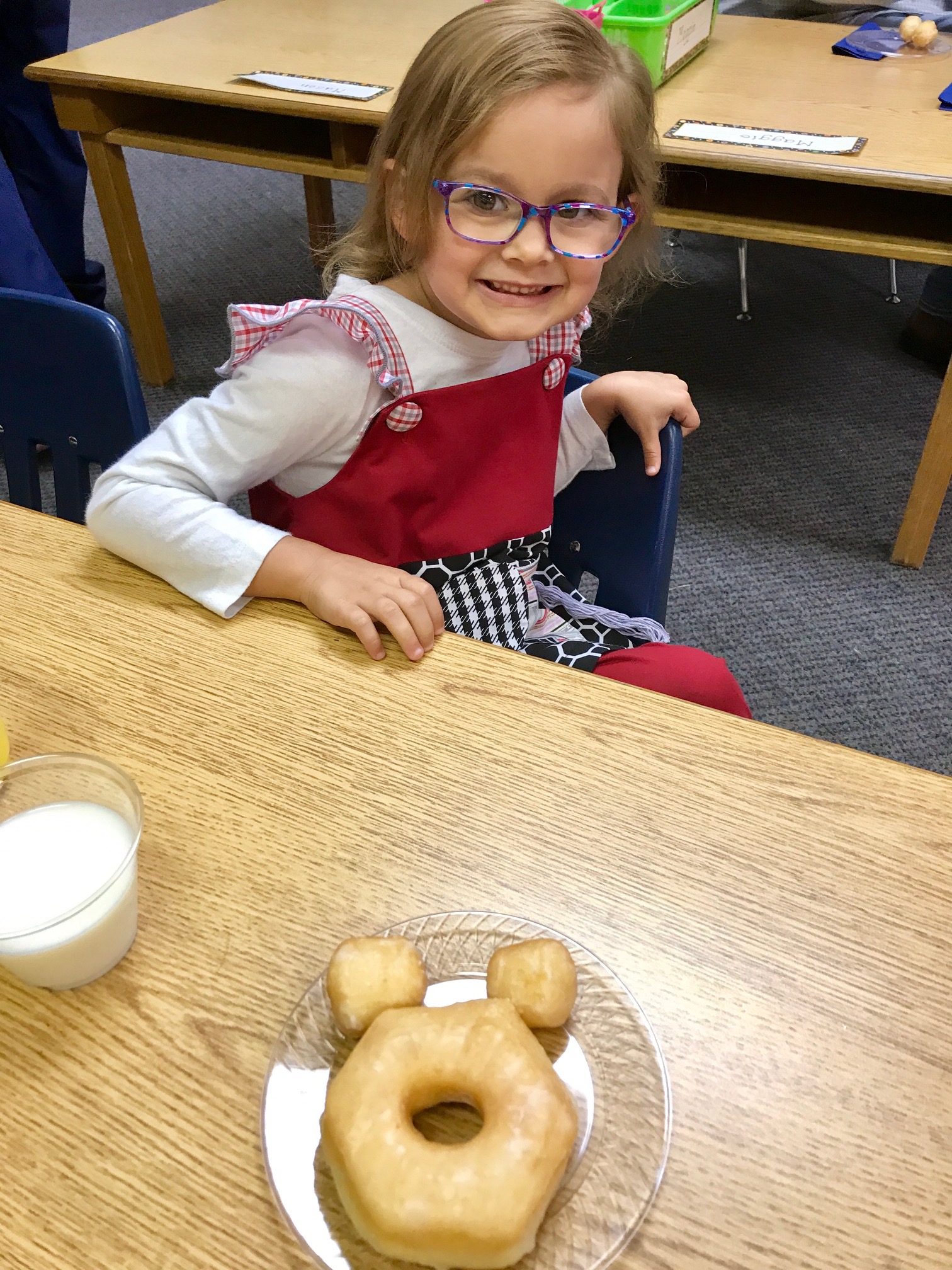 I got to attend a Grandparents Day breakfast this morning and we turned our donut into Micky because we are BIG #Disney fans and it was so easy to do! The other kids were jealous and then they all wanted Micky donuts!