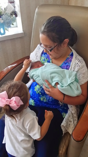 Here is a shot of his sister and cousin welcoming him to the world.