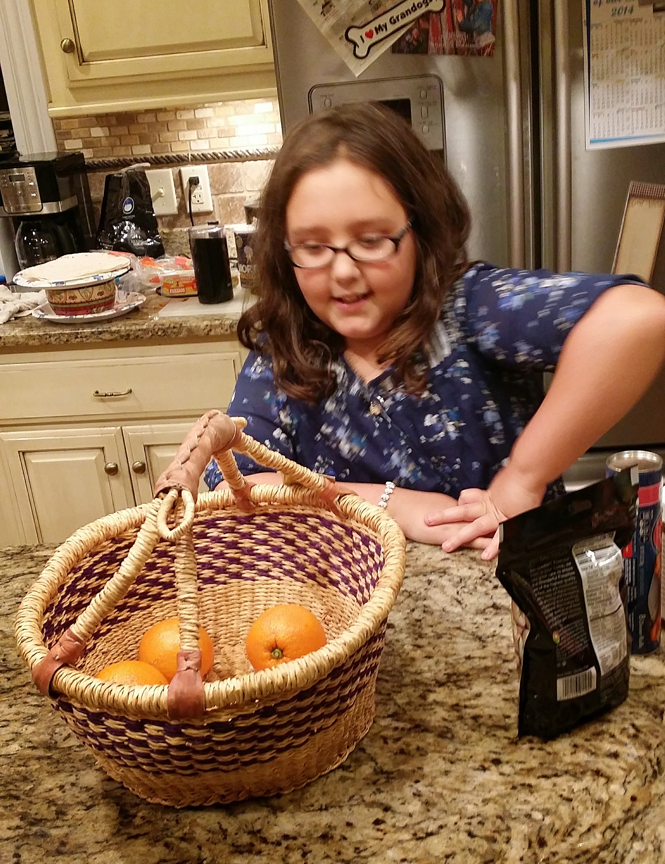 Have you ever seen the show Chopped? It’s on the Food Network and my 9 year old granddaughter loves it. My son and his girlfriend decided to surprise Abby with our own version of Chopped. Abby couldn’t have been more surprised and she absolutely loved it. This first picture is her checking out some of the ingredients they will have to use in their creation.
