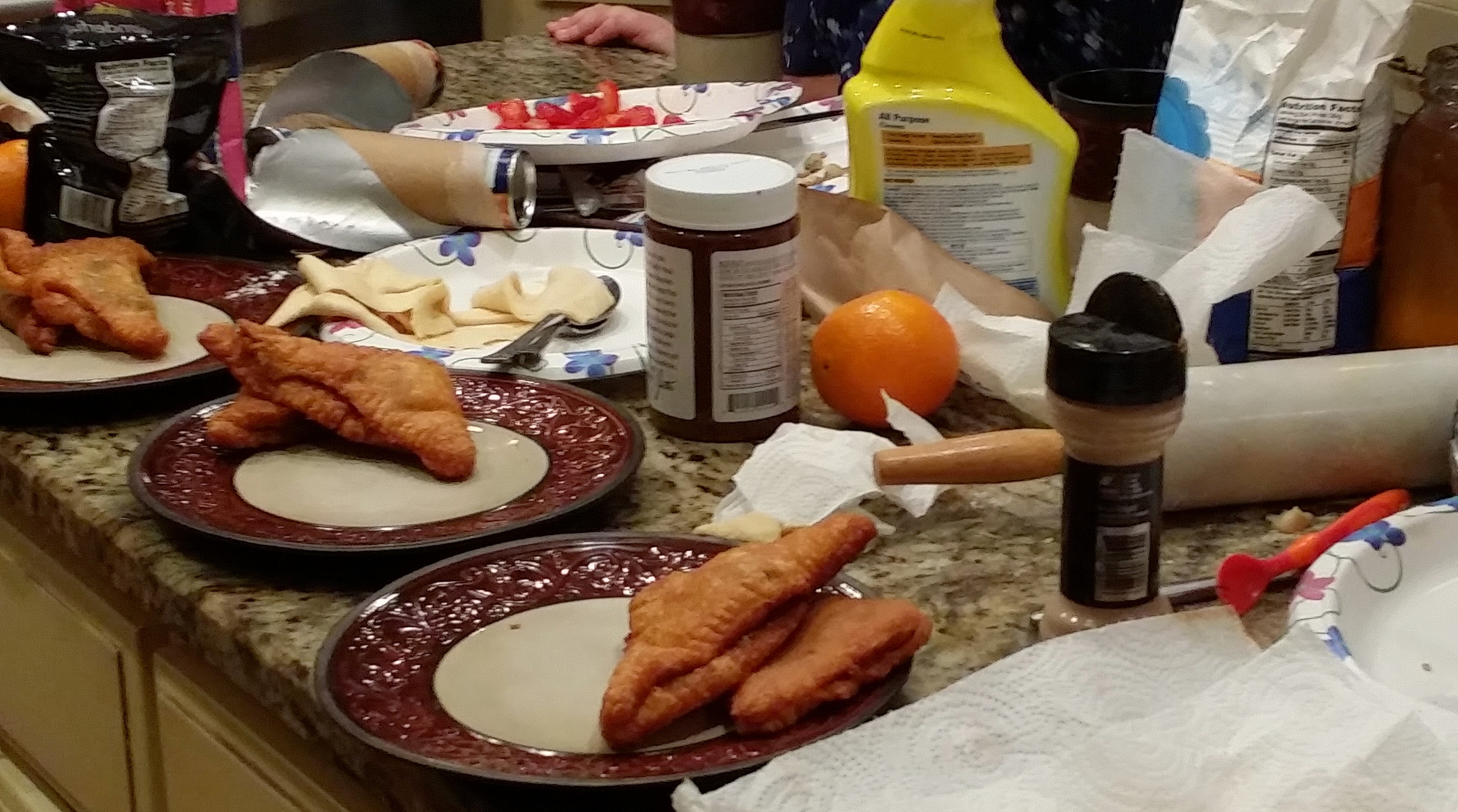 This one gives you an idea of what my kitchen looked like when they finished. Who cleans the kitchen after the real Chopped? I bet it isn’t Nana!