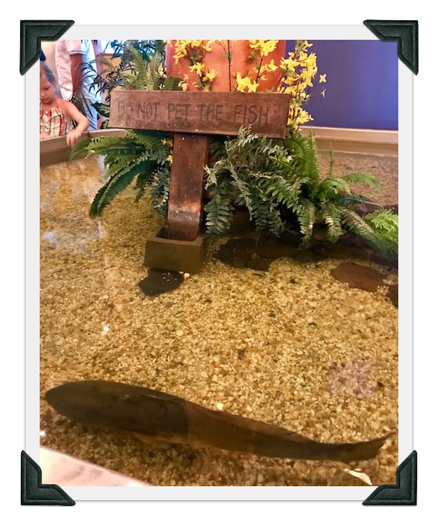 The grandchildren loved watching the fish swim around in an indoor pool. They did what the sign said and didn’t try to pet the fish.
