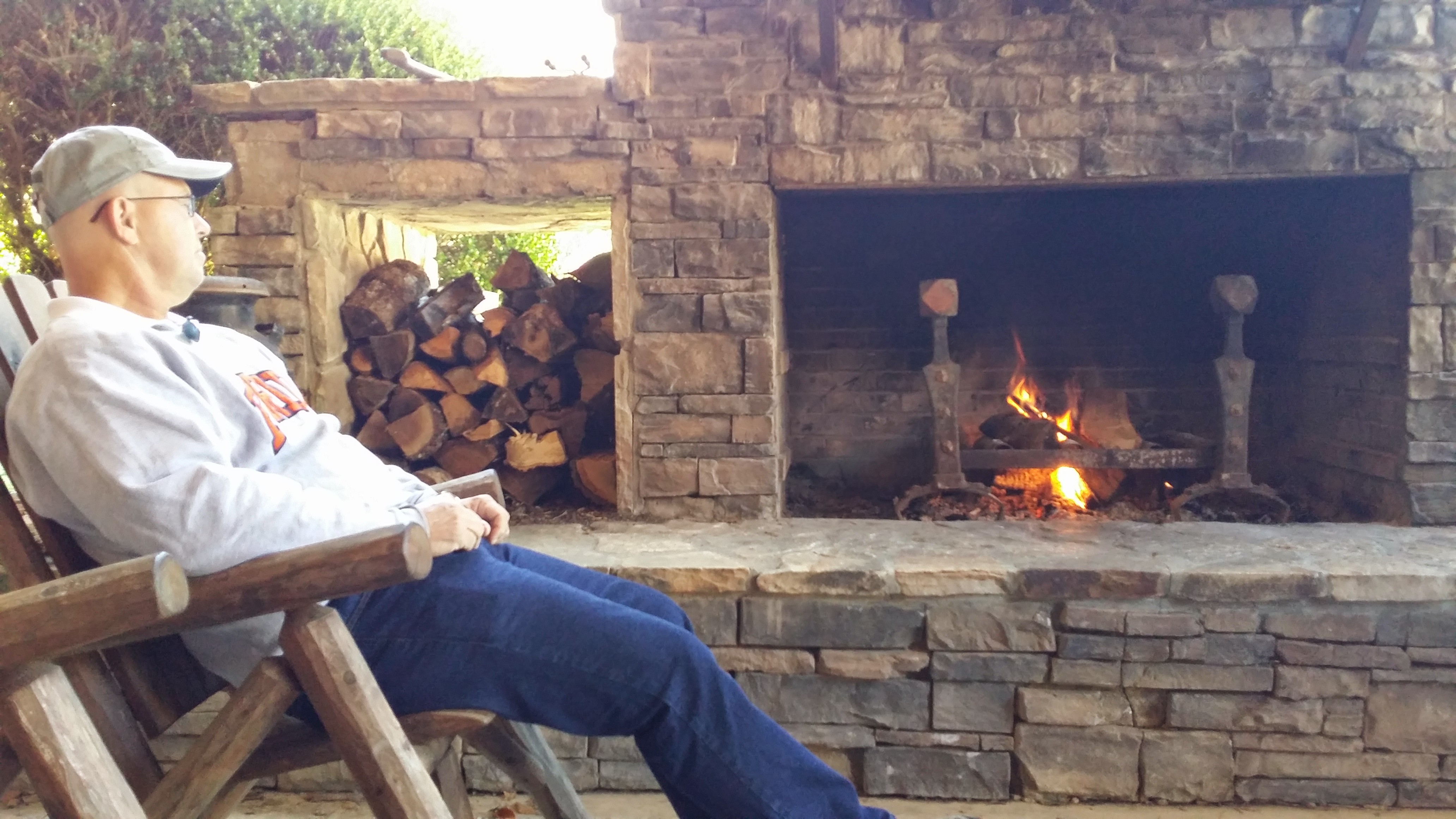 This is my cousin Martha’s husband, Glenn, sitting in front of a huge outdoor fire place. Wish I had one of these in my back yard.