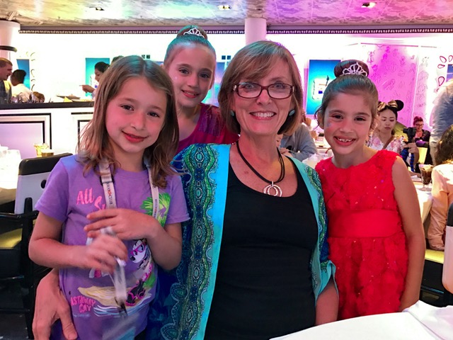 Every night I looked forward to hearing about their day and their experiences. On this particular night two of the girls had been magically turned into princesses and were going to the onboard Frozen show later in the evening. The sister who does not have glitter and her hair up is into sports and did NOT want to be a princess, which as the middle child I would expect no less from her. All middle children are different in a good way. My mom was a middle child and our middle child marches to the beat of a different drummer. So march on sister #2! You all three rocked…you just do it in ways as unique as each of you!