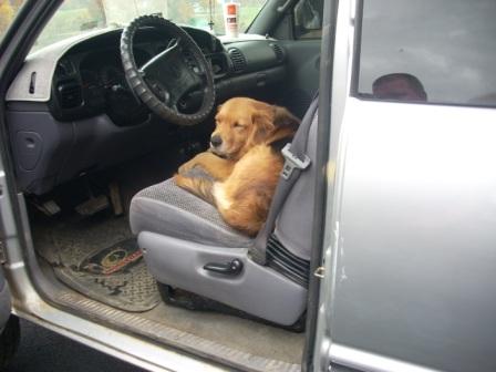 Sam (my son’s dog) was helping him clean out a truck this morning when he decided he’d rather take a nap. He locked the truck and we had to call for help.