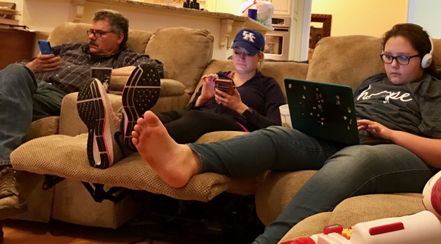 A friend of mine went to a restaurant that doesn’t have Wi-Fi. They have a sign that says, “We want you to talk to each other so we do not have the Internet.” As I looked around our den this weekend I think it might be good idea if we all disconnected occasionally. Does your family do this? Do you think we could get everyone to agree to give up their cell phones on Friday and get them back on Monday?