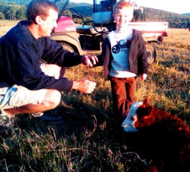 This picture is of my cousin Daniel and his son Brock. Daniel grew up on the farm where we salted cattle but he now lives in Huntsville, Alabama. Recently Daniel and his wife Lori, took Brock to see some baby calves. I hope Brock gets to go salt cattle someday and I hope he has as much fun as I did all those years ago!