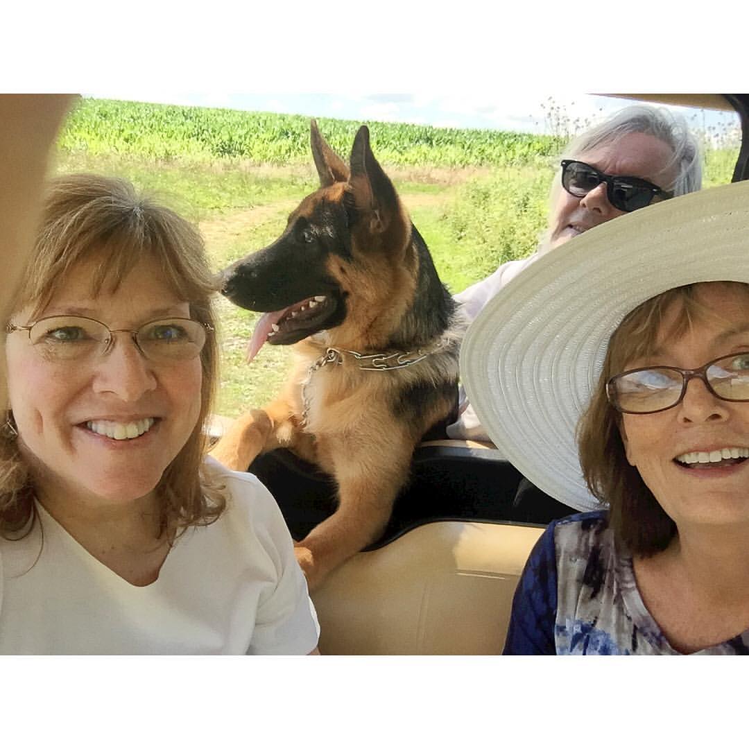 I took them for a golf cart ride and showed them around the farm. It was hard to tell who enjoyed the ride more, Susan, her husband Lindsey, me or Gus.