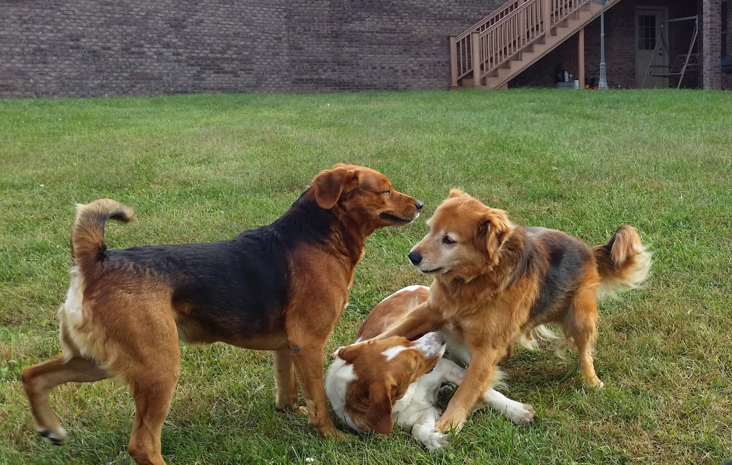 This is our dogs playing “I’m the Alpha Dog….No, I am. No I am!” One of the three is a pure bred, one is a shelter dog and the other a mixed breed. They are all super sweet!