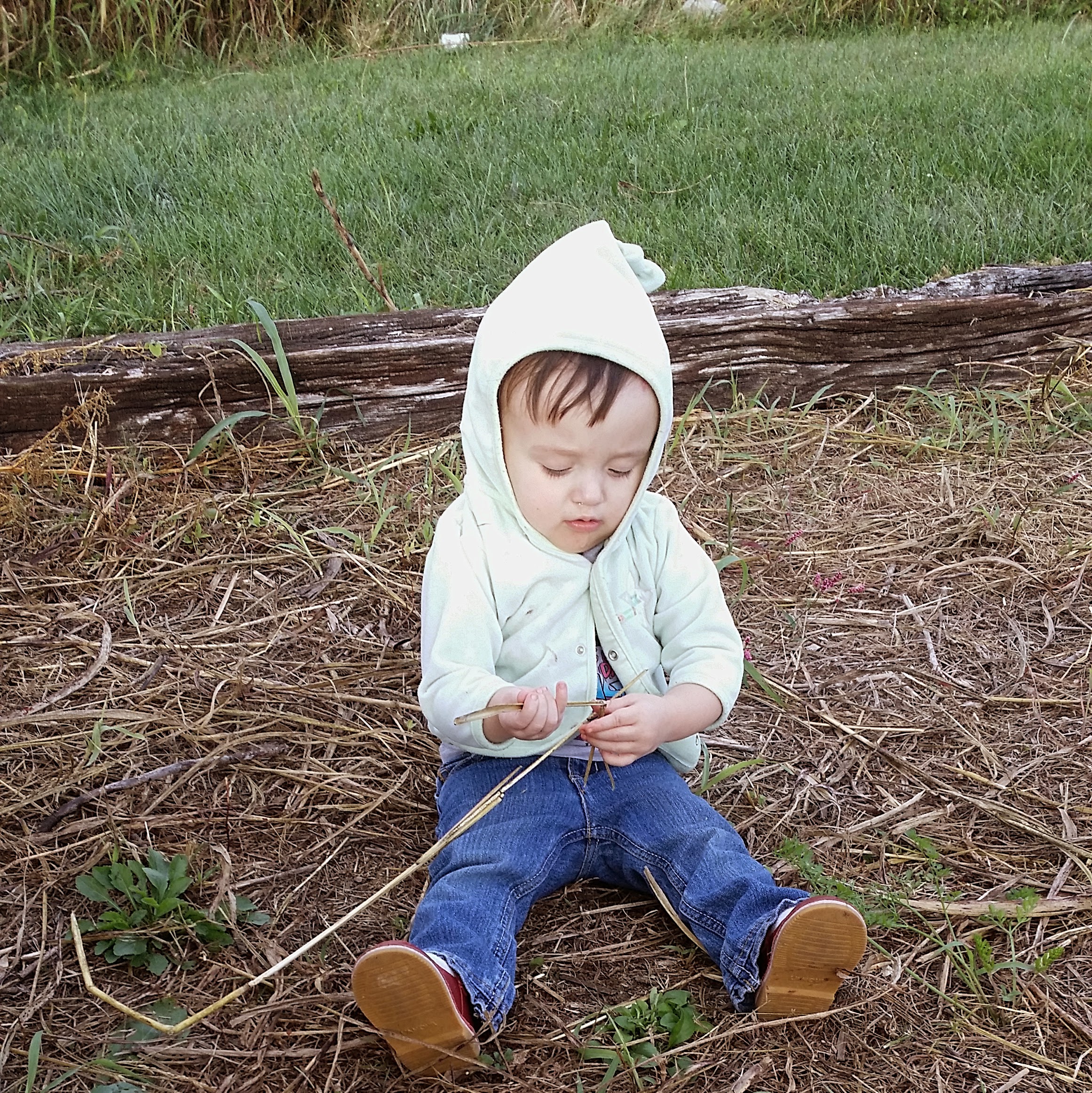 Little sweetie playing with a stick!