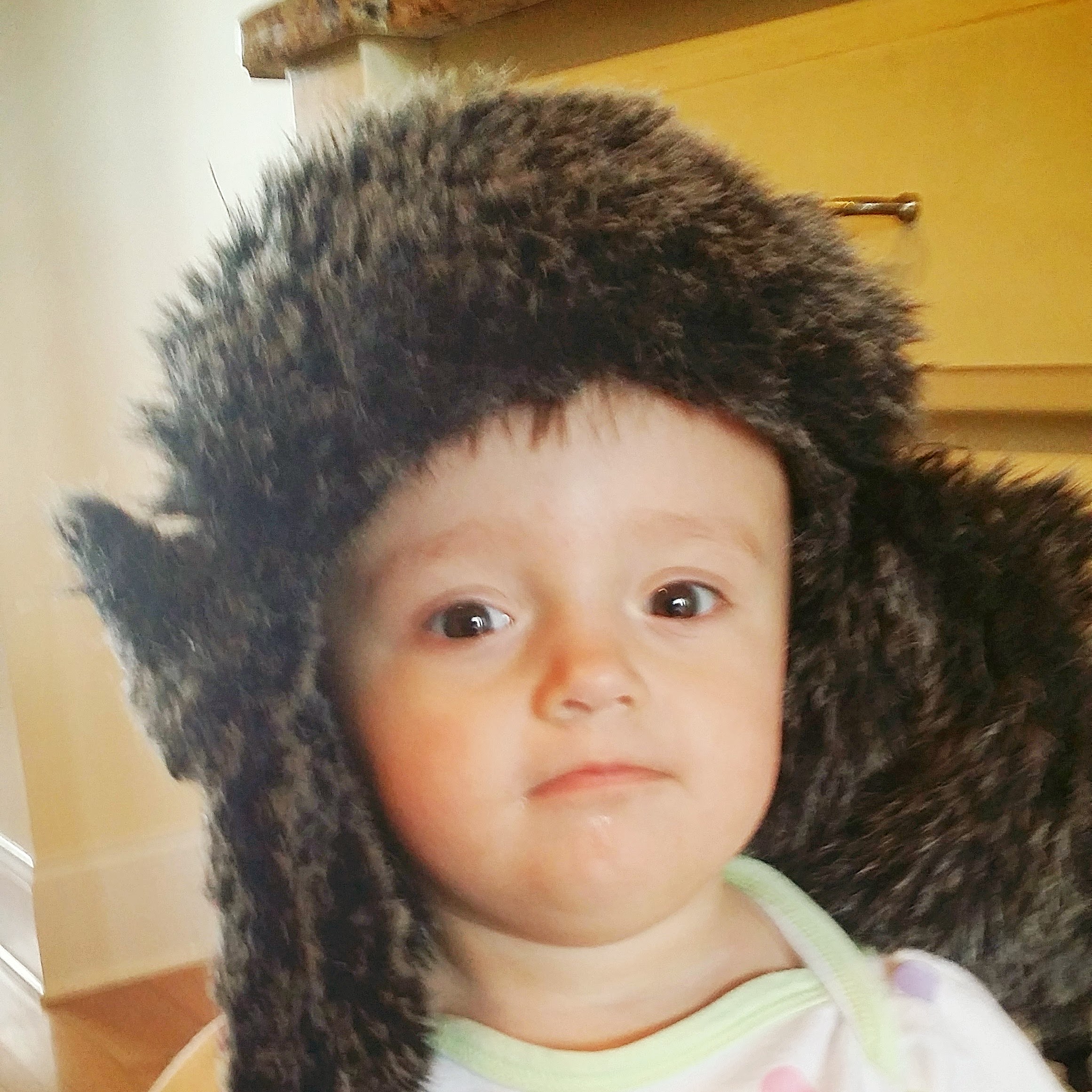 Then we went inside and she found this hat. Doesn’t she look like a babushka doll?
