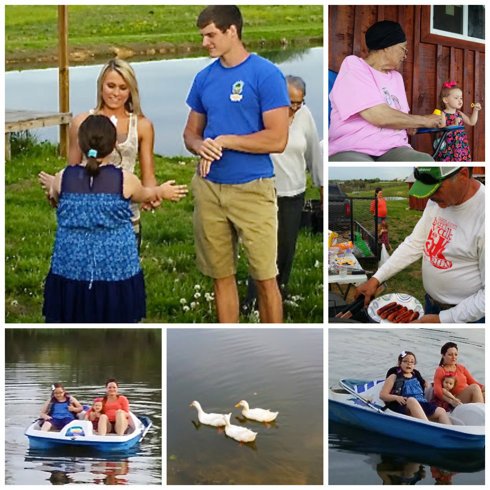 We had a family cookout last weekend and we had so much fun! The food was great. The little ones blew bubbles. We went for paddle boat rides and our farm ducks (Larry, Curly and Moe) dropped by for a visit.