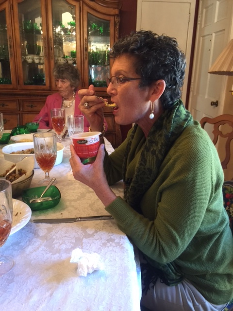 This is my cousin, Martha, who is a kid at heart! In the background is my Aunt Roberta. Can you tell how much we all love food and being together?