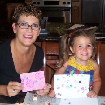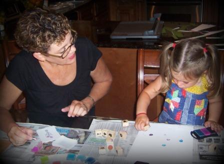 “Here are some pictures of Madi and I making cards using rubber stamps. I made sets to give as gifts and Madi made a mess… but we had fun!” says Nana Martha.