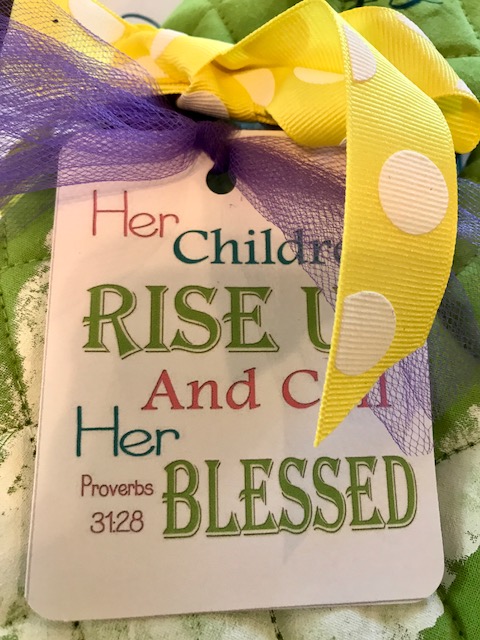 This was attached to each one of the gifts with a pretty bow. If you aren’t familiar with Proverbs 31 in the Bible I encourage you to read it. It’s a beautiful chapter and one of my favorites. Each child’s handprint was placed on the gloves they made for their mother.