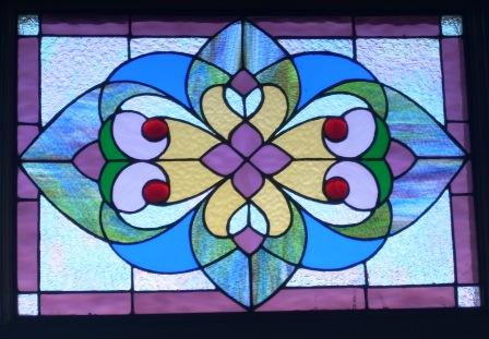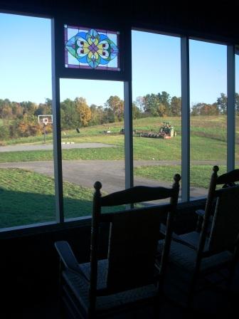 We placed the stained glass piece on the screened in porch that over looks our back yard.