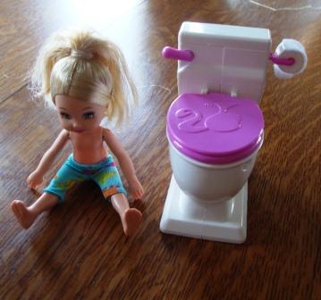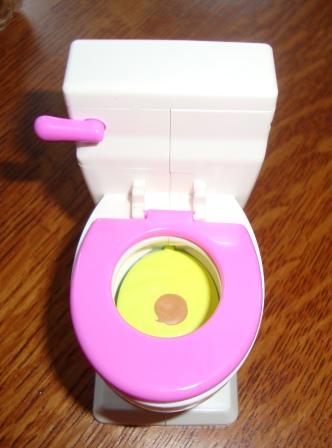 Mattel has a toilet training toddler doll that has this potty in a larger size. It’s one of the few times where the toy designers amusingly keep it real. They should bring back the pregnant Midge doll.