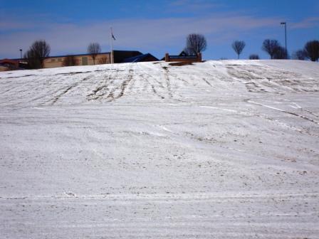 If you look closely you can see the sled tracks coming down the hill. School was dismissed Thursday at lunch and we were out on Friday. The weatherman is saying there is a possibility of more snow on Monday. At this rate we may not get out of school until July.