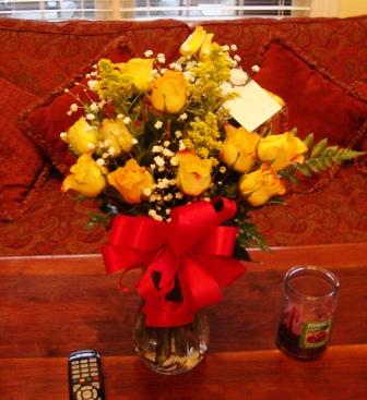 Ah, but the day after Valentine’s Day he could make up for it by buying 3x the flowers and showering her with petals, too. Dh went to the grocery store last night and came home with 3 little rose plants – probably 60% off, but that’s alright – thrifty is good. The flowers look beautiful in my kitchen and he presented them saying, “Happy Great Mother Day.” After the day I had with our youngest yesterday, I wasn’t feeling so great – so, it was just really sweet. Hope all worked out for that poor, forgetful man. Your yellow roses are lovely.