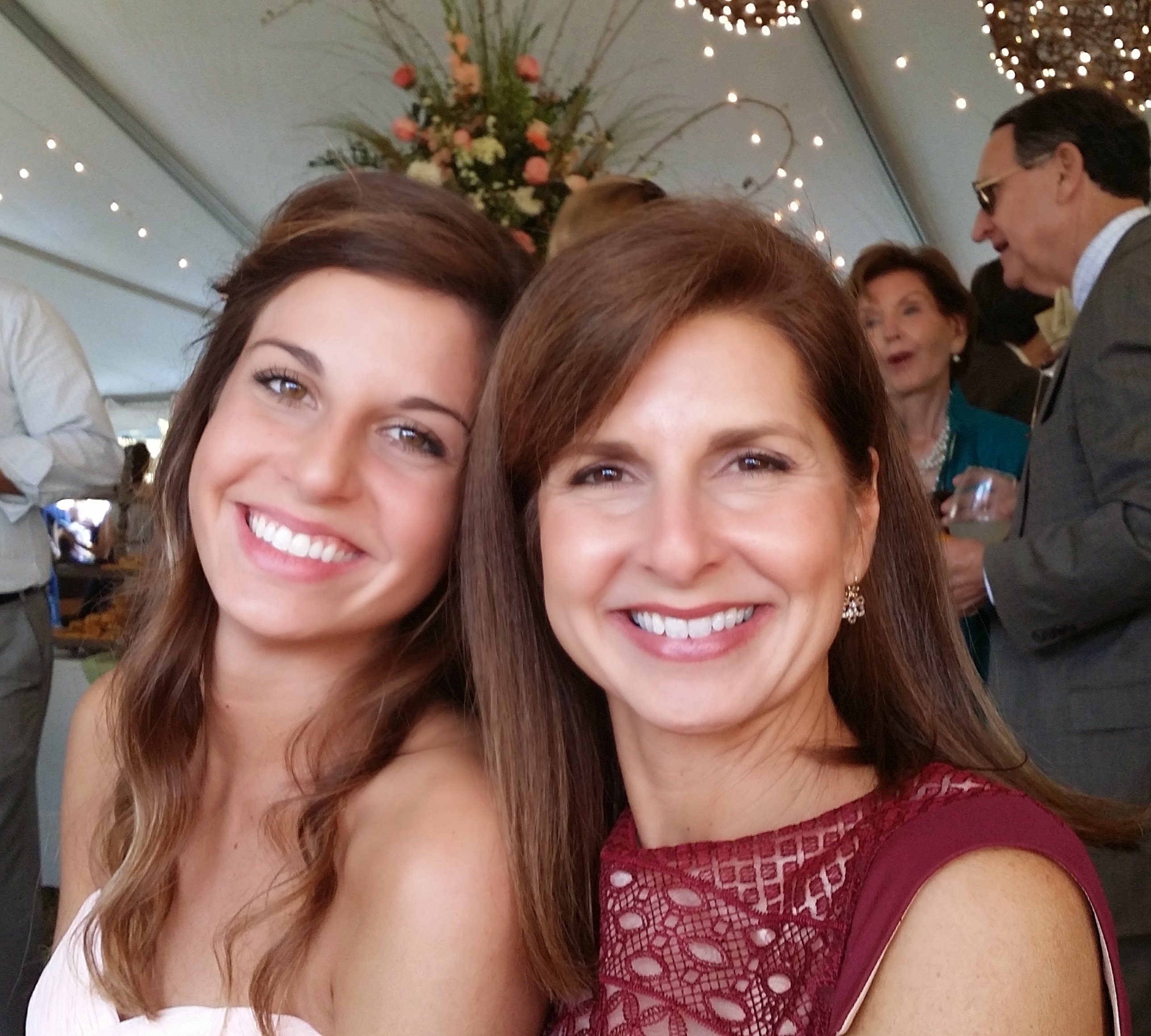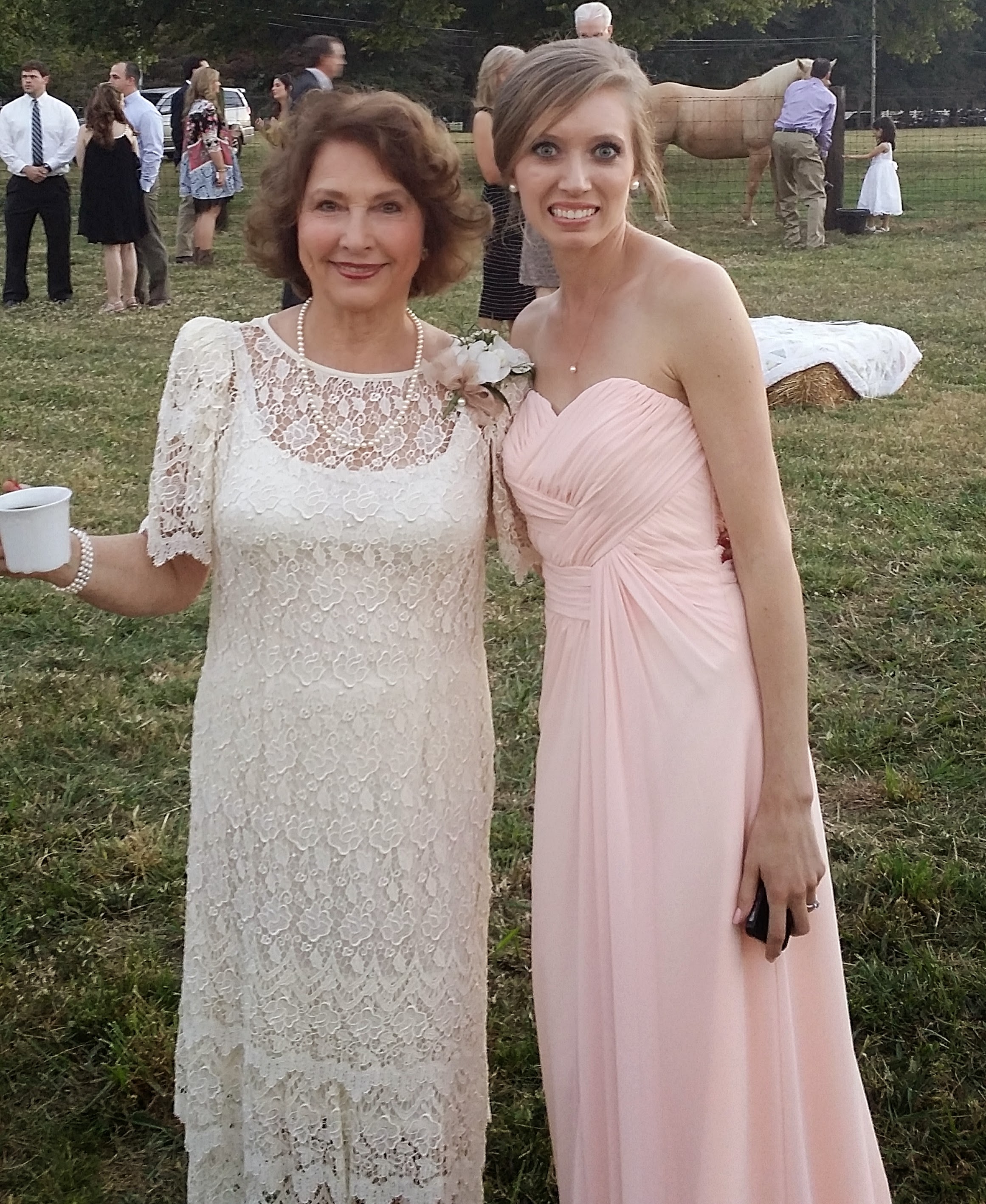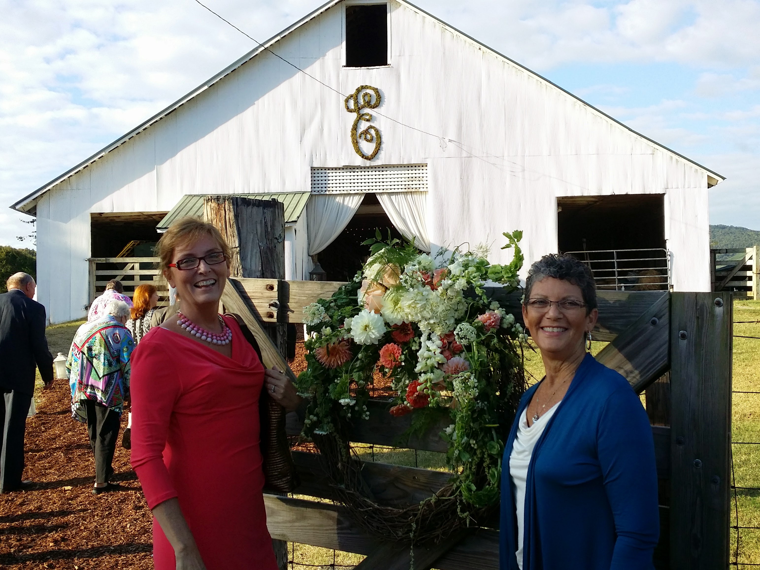 I went to my cousin’s daughter’s wedding this weekend in Alabama and it was beautiful! The wedding ceremony was in a church but the reception was outside. To get to the tent where the food tables were set up we had to walk through a barn. The inside of the barn was decorated with lights and pictures of the young couple from the time they began dating.