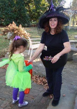 Last year our community started something that I hope they will continue; trick or treating on the square. It’s one stop shopping for little people and much easier than driving from house to house. Nick and I took Abby (aka Tinkerbell) to town, parked and walked around the square. There were lots of folks set up in front of stores passing out candy. Most of them were merchants but some were volunteer firefighters and other organizations.
