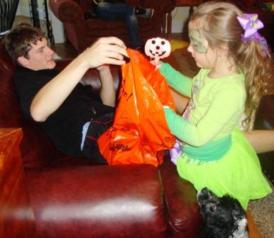 Finally we came home and Abby couldn’t wait to get into her candy bag.