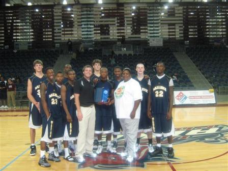 Back during the summer my boys and my husband traveled to South Carolina for the 2009 Peach State Summer Showcase. I wasn’t able to go but I kept up with every game by cell phone. At the end of every quarter I made my husband call and give me an update. They played lots of games over three days so we were on the phone a lot. They won their age division and while I was thrilled, I was disappointed that Bill didn’t bring home pictures or videos. So this week their coach (who just got married-Congrats Coach Hicks!) sent this picture and the website about the tournament. Moms and nanas are the best braggers in the world and I’m proud to say I can brag with the best of them. Mid-State Ballerz Rock! Congrats guys!