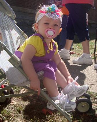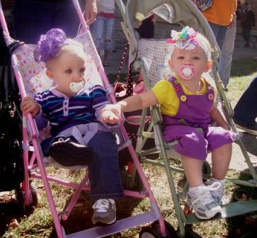 Just got up from my nap! Sam & Liz had a great time playing games and looking at toys. When we left I thought we had been there two hours but it wasn’t quite as long. We had a great time but I didn’t get to visit with frinds for more than a few seconds. Couldn’t turn my head with two little heads to watch in that big of a crowd. Maybe next year I will be brave enough (and smart enough to bring Mike) and we will let Cale have his first Pumpkin Fest experience. Tootsie