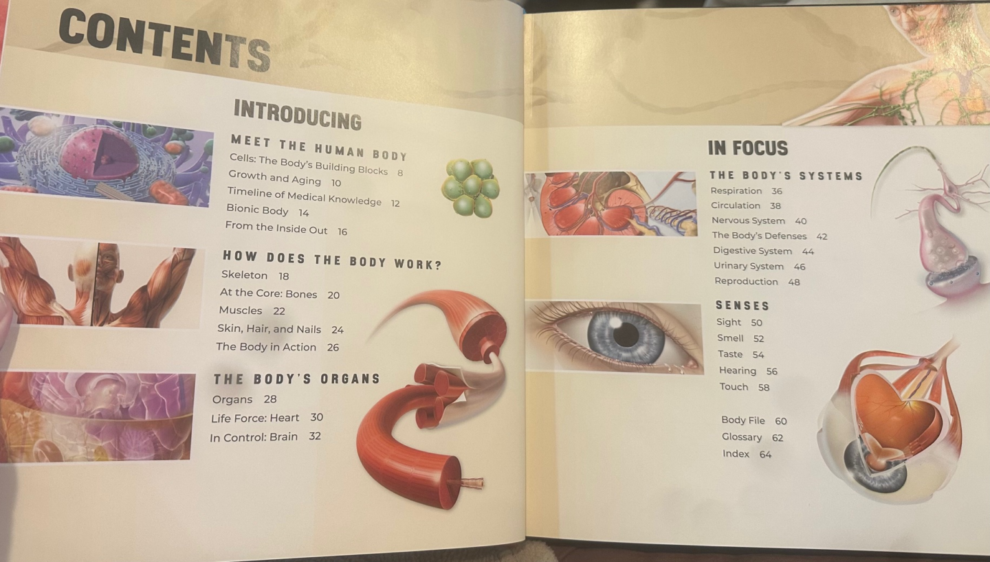 Honestly, I think I slept through my Biology class and I never studied Anatomy so this book has taught Nana some fascinating facts; like how blood circulates throughout the body and which part of the brain helps form memories. There’s a helpful glossary in the back and for those who have tweens there is a tasteful and informative section on reproduction that would be a great conversation starter for parents.