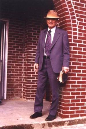 A photo of Robert F. Bell on the porch at Bellview Church of Christ includes 3 of the things he loved; his Bible, a cigarette, and his leather hat. The well-worn Bible was he mainstay, and he seriously tried to follow it to the best of his knowledge and lead his family to do the same. The cigarette was a pleasure to him that was not, in those days, a guilty one–he was blissfully unaware of the harm it might cause him or those around him. The leather hat was the little “pride” thing that he loved to wear when he ‘dressed up’. We would brag on how nice he looked and tongue-in-cheek he would say, “I can’t help it”….. A wonderfully fun, admirable, smart, strong, good, lovable man.
