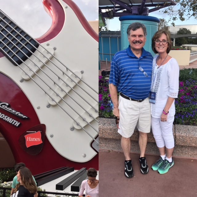 Pictured below is me and the husband in front of The Rock ‘n’ Roller Coaster. Aerosmith music was blasting over the load speakers, which suited me just fine because I’m a long time fan. I tried to get a photo of the huge guitar (sponsored by my friends at #Hanes) but it was so big I couldn’t get in position.