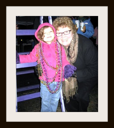In between the parades all weekend we enjoyed visiting with everyone, eating lots of food, and of course just playing and dancing around with Stella!ย ย ย The best part of Mardi Gras weekend to me was being on the ladder with Stella, and watching her excitement and of course playing and dancing around with her.ย After all, that’s what being a Nana is all about!!!