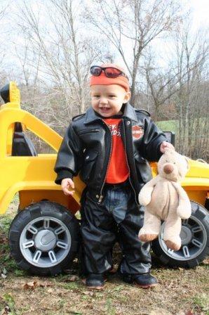 This adorable little guy is Kruz. Sounds like a motorcycle guy, doesn’t it?ย Proud mom, Jessica says, “My grandmother, Barbara Curry, made the chaps for Kruz’s 2nd Halloween in 2007. When I was a little girl, my grandmother made all my costumes… I was always dressed up as a cheerleader, so each year she used the same pattern, just a little bigger size.”