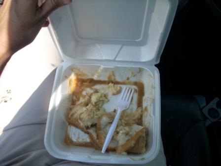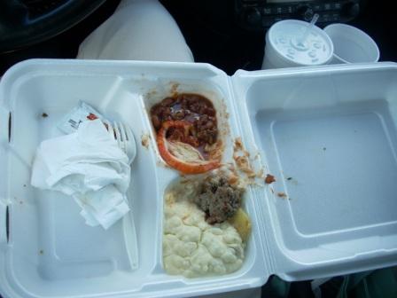 This was meatloaf, mashed potatos and some sort of beans. Man was it rank. I quickly wheeled into the car wash and started throwing trash in the can. I strongly advise all nanas to clean out their vehicles at least once a week. Especially in the summer time.