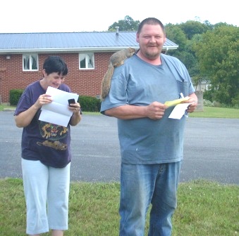 Look at this picture closely. The man has a squirrel on his shoulder! I don’t know these folks but I know squirrels and the little critters are wild. They do NOT normally sit on people’s shoulders. There was no one behind me so I stopped my van, rolled my window down and asked them if I could make their picture. “Sure,” he said. So I did. He told me the squirrel’s name was Molly. Before I thought about it I asked, “And how do you know she’s a girl?” Now look at the lady in the picture. She’s covering her face and laughing. I decided I really didn’t need to know about squirrel anatomy, so I said, “Never mind” and drove off.