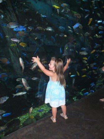 Awww…a fish hug! And what a pretty little girl in her fancy dress!